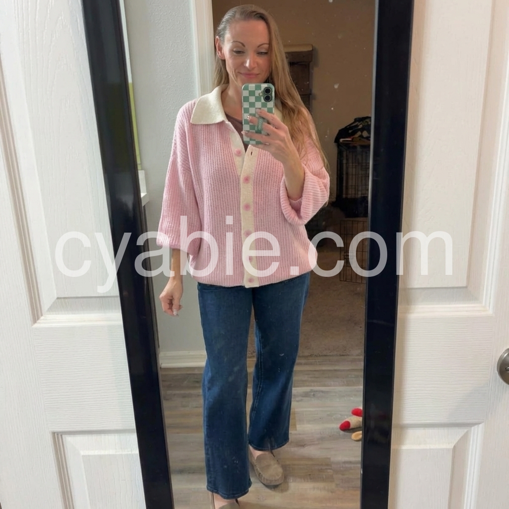 Yes!It runs true to the garment size chart please choose your size based on your measurements.This sweet pink collared long sleeve cardigan is the perfect addition to any wardrobe. Made from high-quality materials, it offers both comfort and style. Its versatile design allows for easy pairing with any outfit, making it a must-have for any fashion enthusiast. Embrace comfort and sophistication with this cozy sweater.