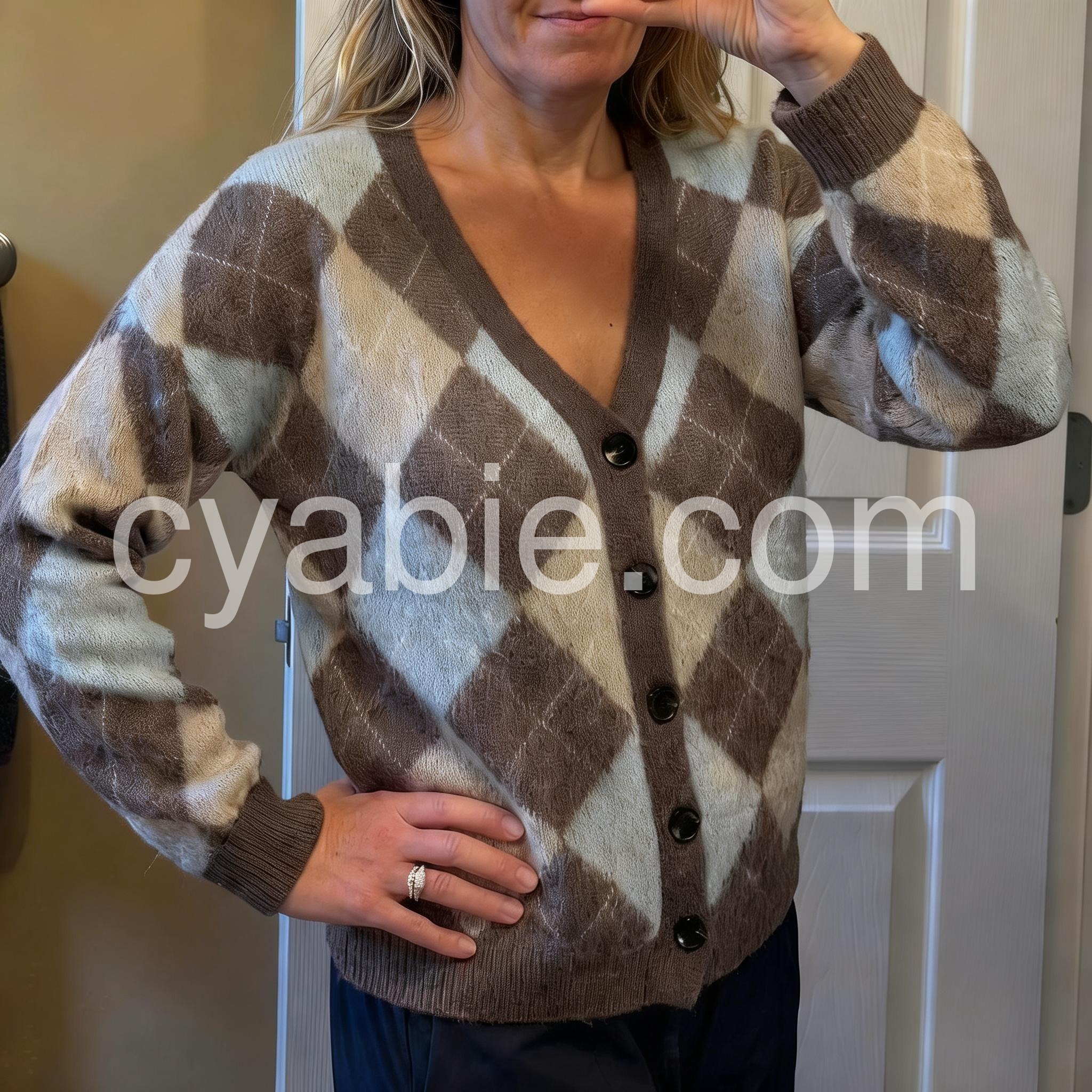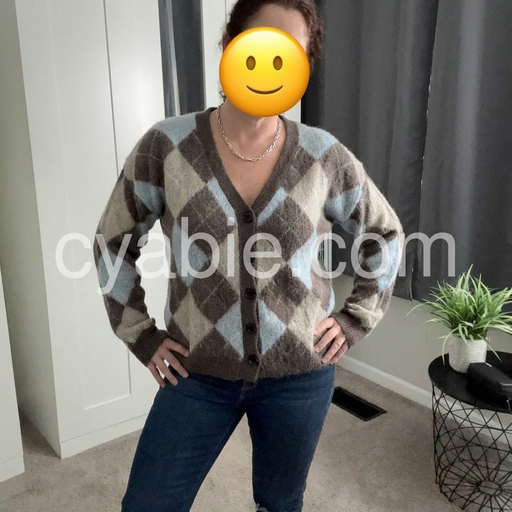 Yes!It runs true to the garment size chart please choose your size based on your measurements.This cardigan features a timeless argyle geometric print in versatile neutral tones, offering a sophisticated layering option. Crafted with a button-front design, it allows easy wear and adjustable styling. Its refined pattern blends classic and contemporary elements, making it an ideal choice for enhancing both casual and polished outfits with subtle texture and depth.