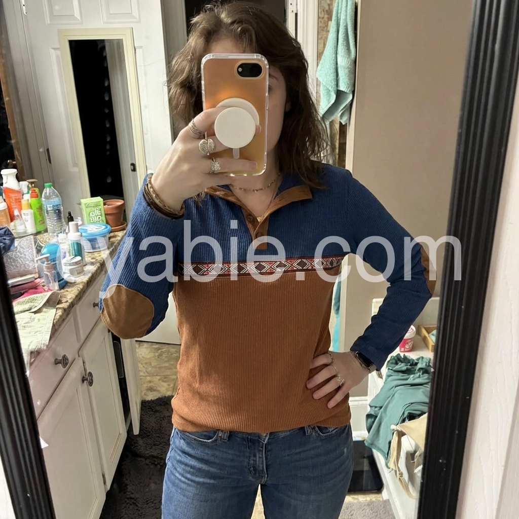 Yes!It runs true to the garment size chart please choose your size based on your measurements.Elevate your casual wardrobe with this sophisticated brown long sleeve top, featuring contrasting color block panels that add visual interest and dimension. The signature elbow patches deliver timeless preppy appeal while reinforcing high-wear areas for enhanced durability. Crafted for versatility, this piece transitions seamlessly from weekend errands to relaxed office settings. The structured long sleeves provide coverage and warmth, making it an ideal layering piece for transitional seasons. A refined choice for those who appreciate understated style with functional design details.