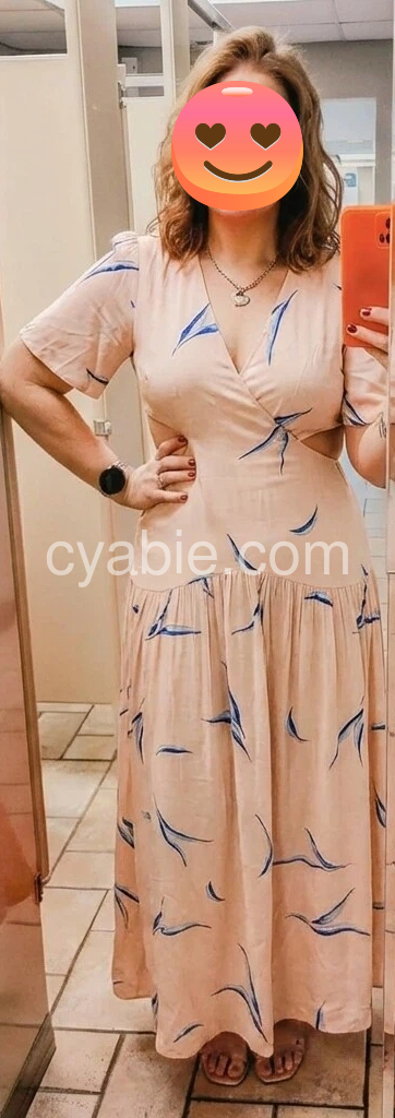 If there’s only one new item you buy this season, make it this bombshell dress. The head-turning maxi dress printed with feathery blue leaves is fashioned with sexy trimmed cutouts and seam at the hips that create soft gathering and an A-line shape. It’s perfect for date nights and beach days.