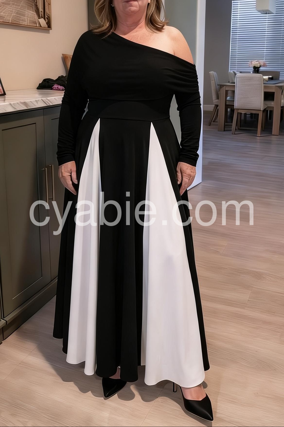 Yes!It runs true to the garment size chart please choose your size based on your measurements.This Black and White Color Block Maxi Dress is the perfect blend of modern and classic styles. Its sleek and stylish design is perfect for any occasion and its color blocking adds a touch of elegance. Made with high-quality materials, it offers both comfort and sophistication.