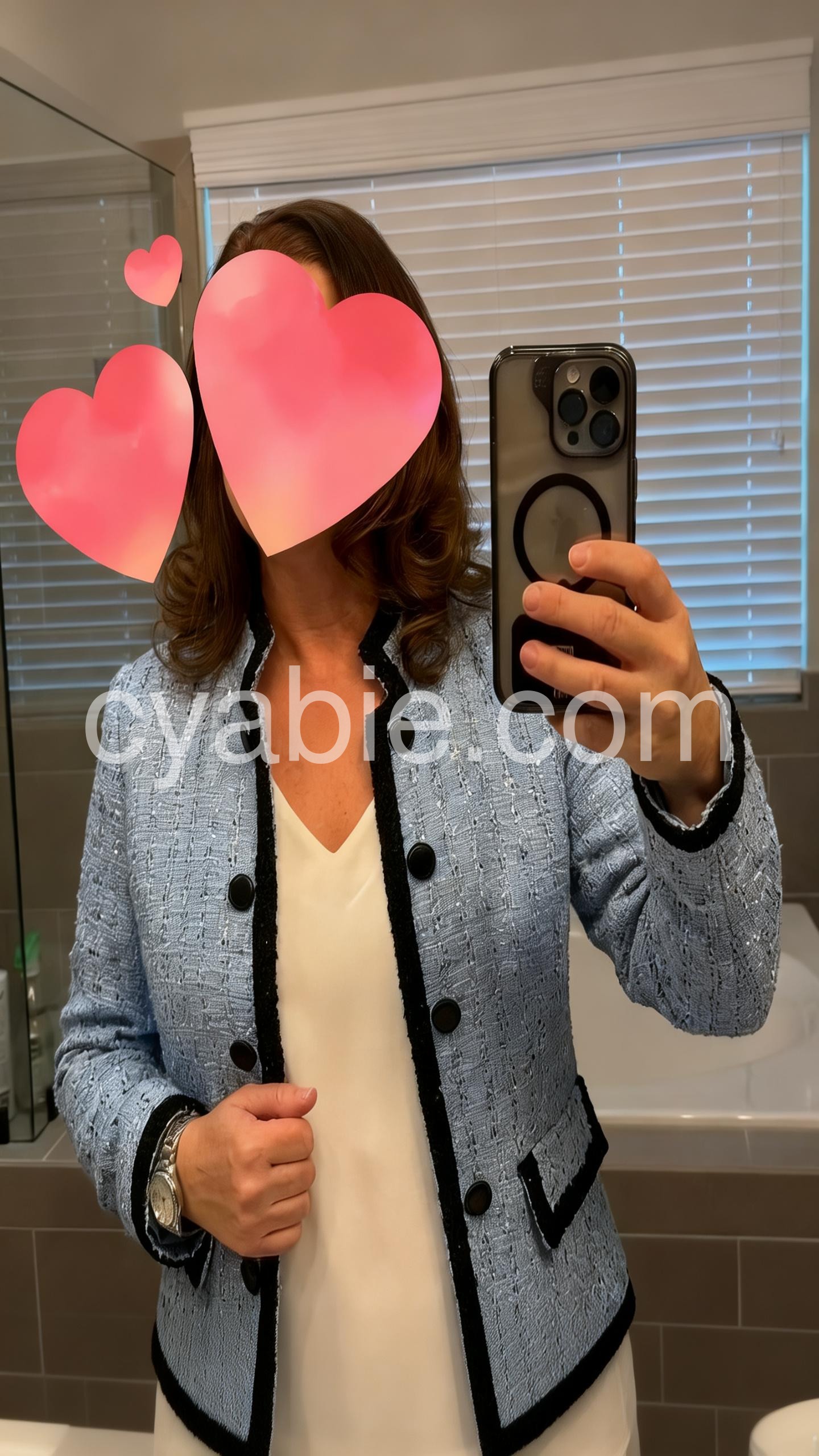 Yes!It runs true to the garment size chart please choose your size based on your measurements.This blue tweed blazer features a refined black trim and a classic double-button closure, offering a sharp, tailored fit. Its textured fabric adds depth and sophistication, making it ideal for both professional settings and stylish casual wear. Designed to elevate your wardrobe with timeless elegance and structured silhouette.