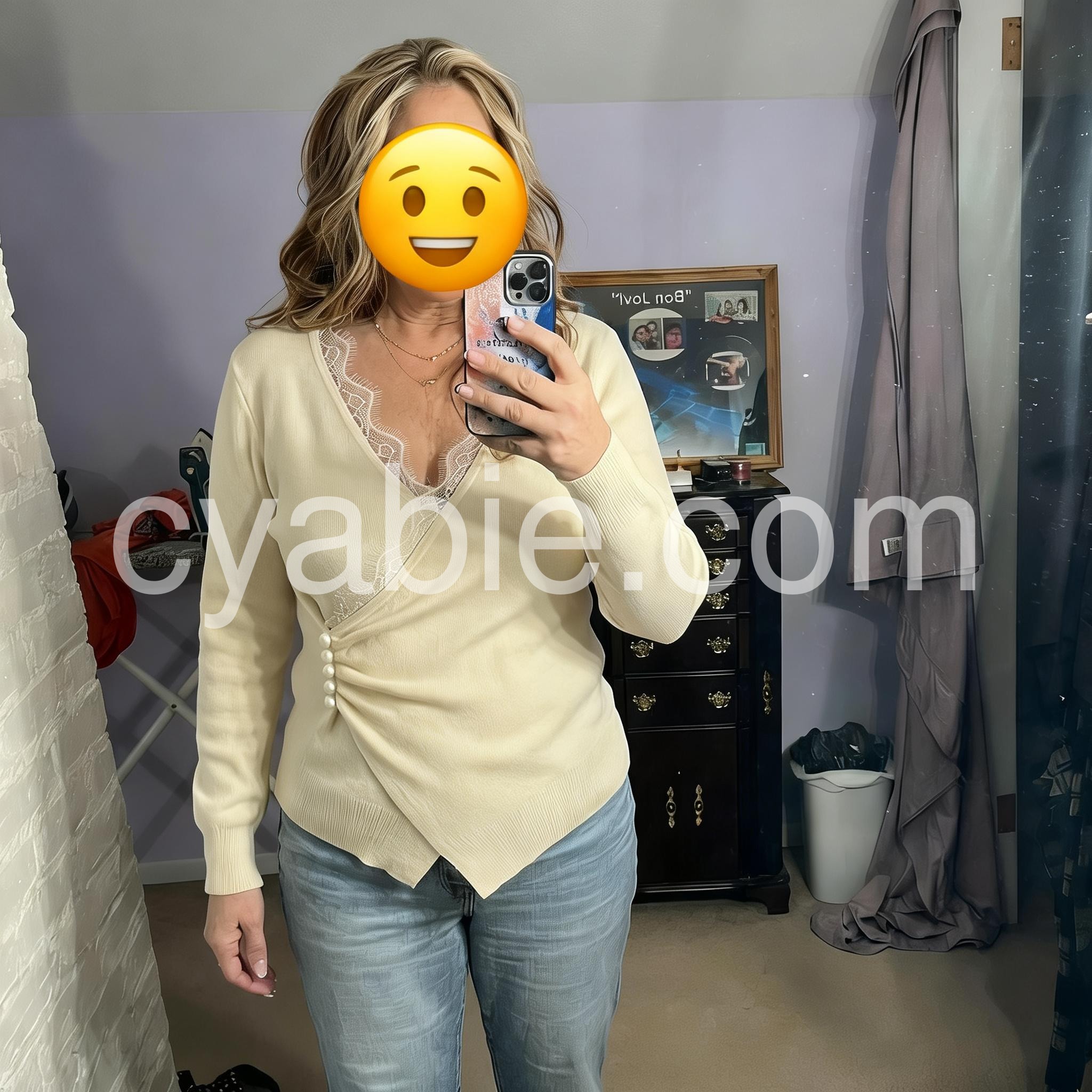 Yes!It runs true to the garment size chart please choose your size based on your measurements.Elevate your knitwear collection with this refined wrap sweater, where timeless design meets contemporary styling. The delicate vintage lace trim detailing adds an unexpected sophistication to the clean, minimalist silhouette, creating a versatile piece that transitions seamlessly from casual to polished occasions. Crafted with careful attention to construction, the wrap design offers flattering draping and adjustable fit, while the plain knit base ensures effortless coordination with your existing wardrobe. A modern essential with vintage-inspired accents.