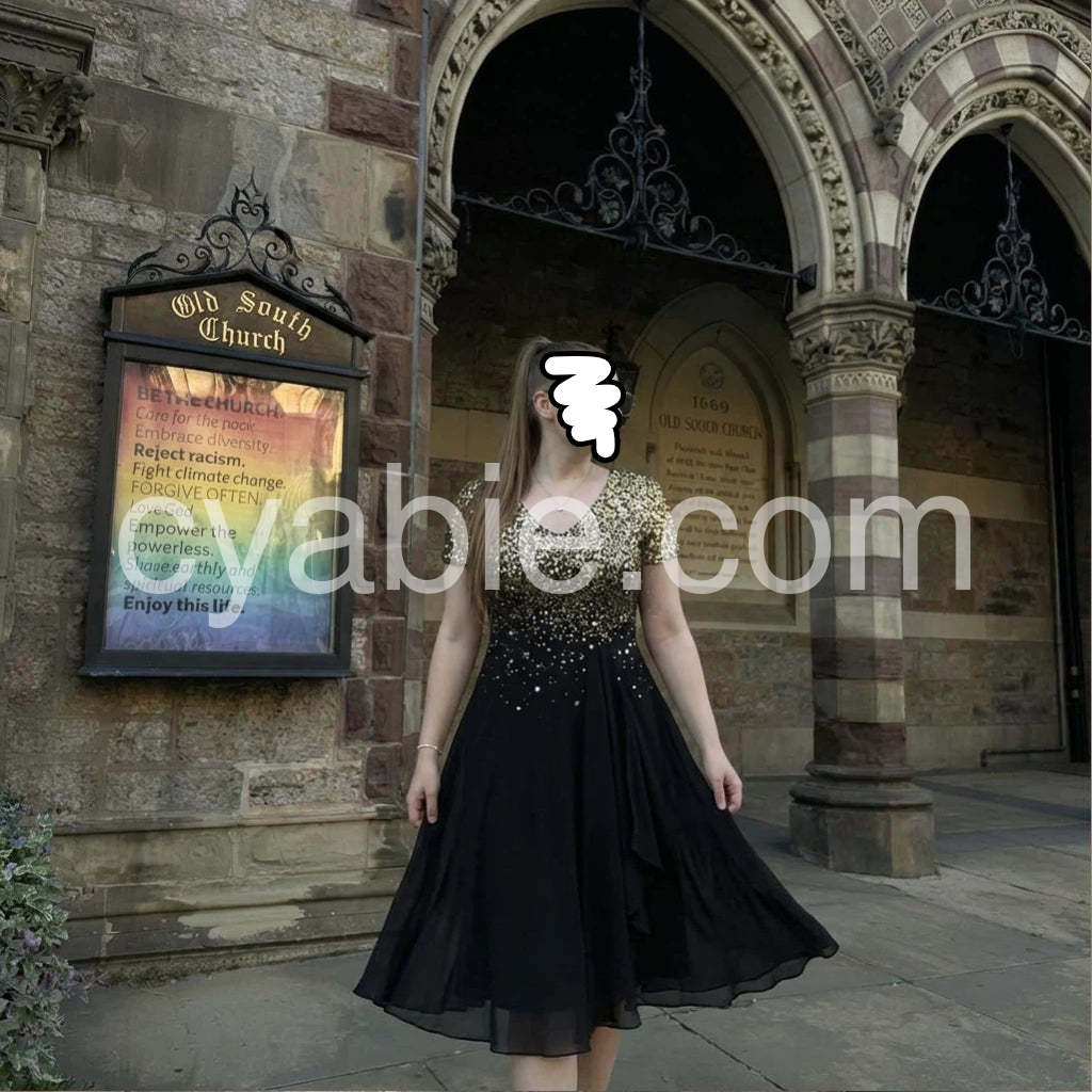 Yes!It runs true to the garment size chart please choose your size based on your measurements.This elegant V-neck midi dress combines sophisticated design with practical comfort. The short sleeves offer versatility for various occasions, while the flattering V-neckline enhances your neckline. The midi length provides a balanced silhouette suitable for both professional settings and social gatherings. Crafted with attention to detail, this stunning dress will become a cornerstone piece in your wardrobe rotation.