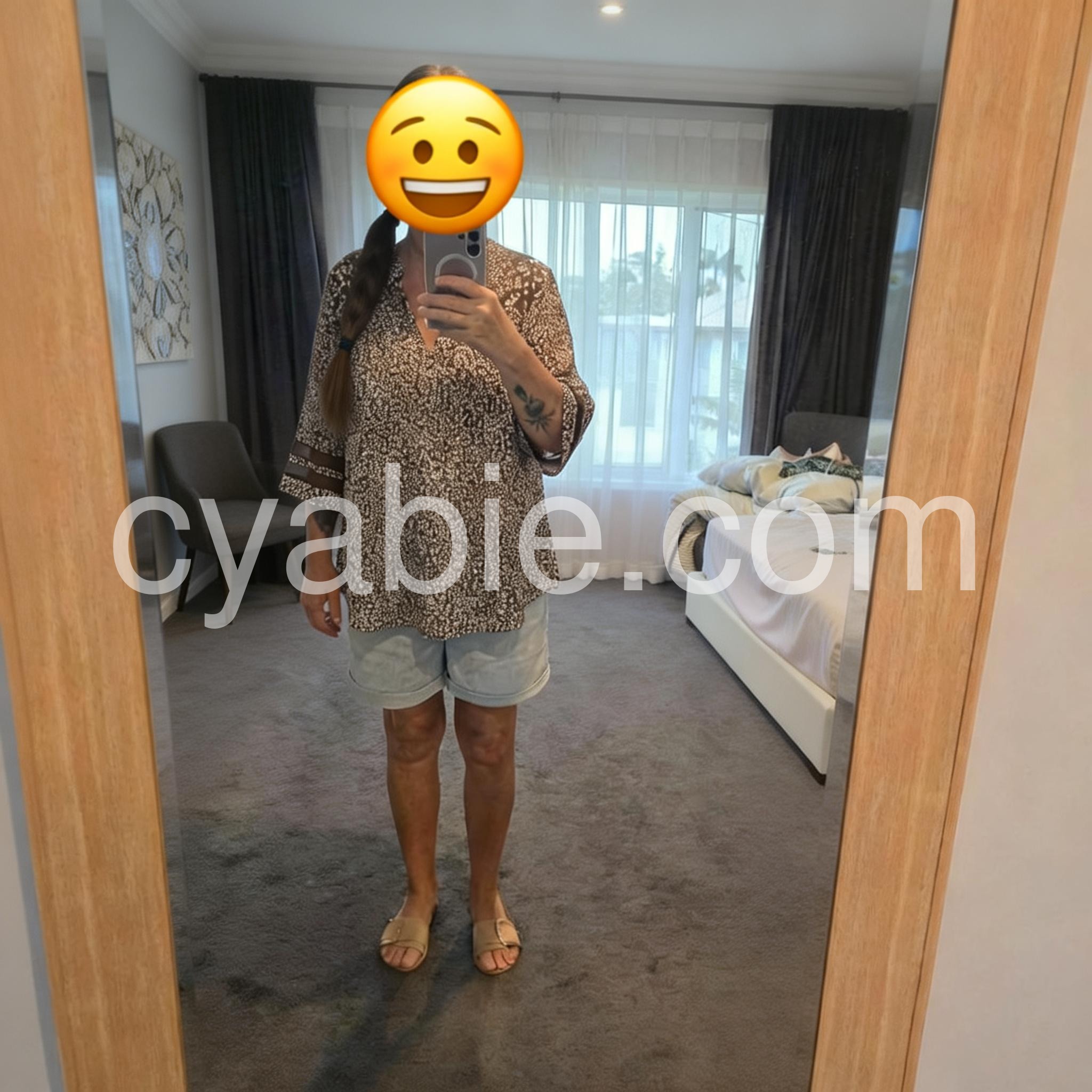 Yes!It runs true to the garment size chart please choose your size based on your measurements.This brown V-neck 3/4 sleeve top is a versatile addition to any wardrobe. Made from high-quality fabric, it offers both comfort and style. With its classic design and flattering neckline, it is perfect for any occasion. Elevate your look with this timeless piece.