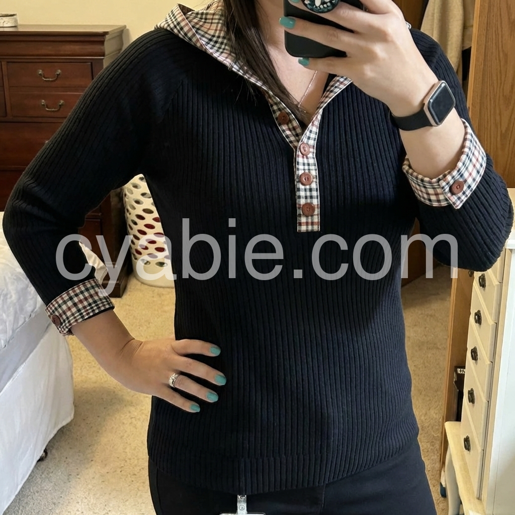 Yes!It runs true to the garment size chart please choose your size based on your measurements.This long sleeve sweatshirt combines classic comfort with refined detailing. The black base provides versatile styling options, while the check trim accents add visual interest and a polished touch. Crafted for everyday wear, it delivers the warmth and durability you'd expect from a quality sweatshirt. The long sleeves offer extended coverage, making it ideal for layering or wearing solo during cooler seasons. A dependable wardrobe staple that balances casual ease with understated sophistication.