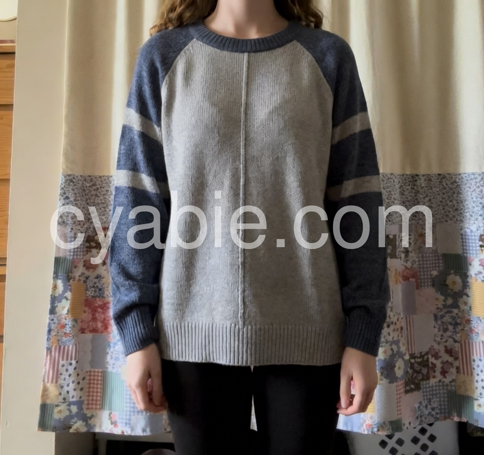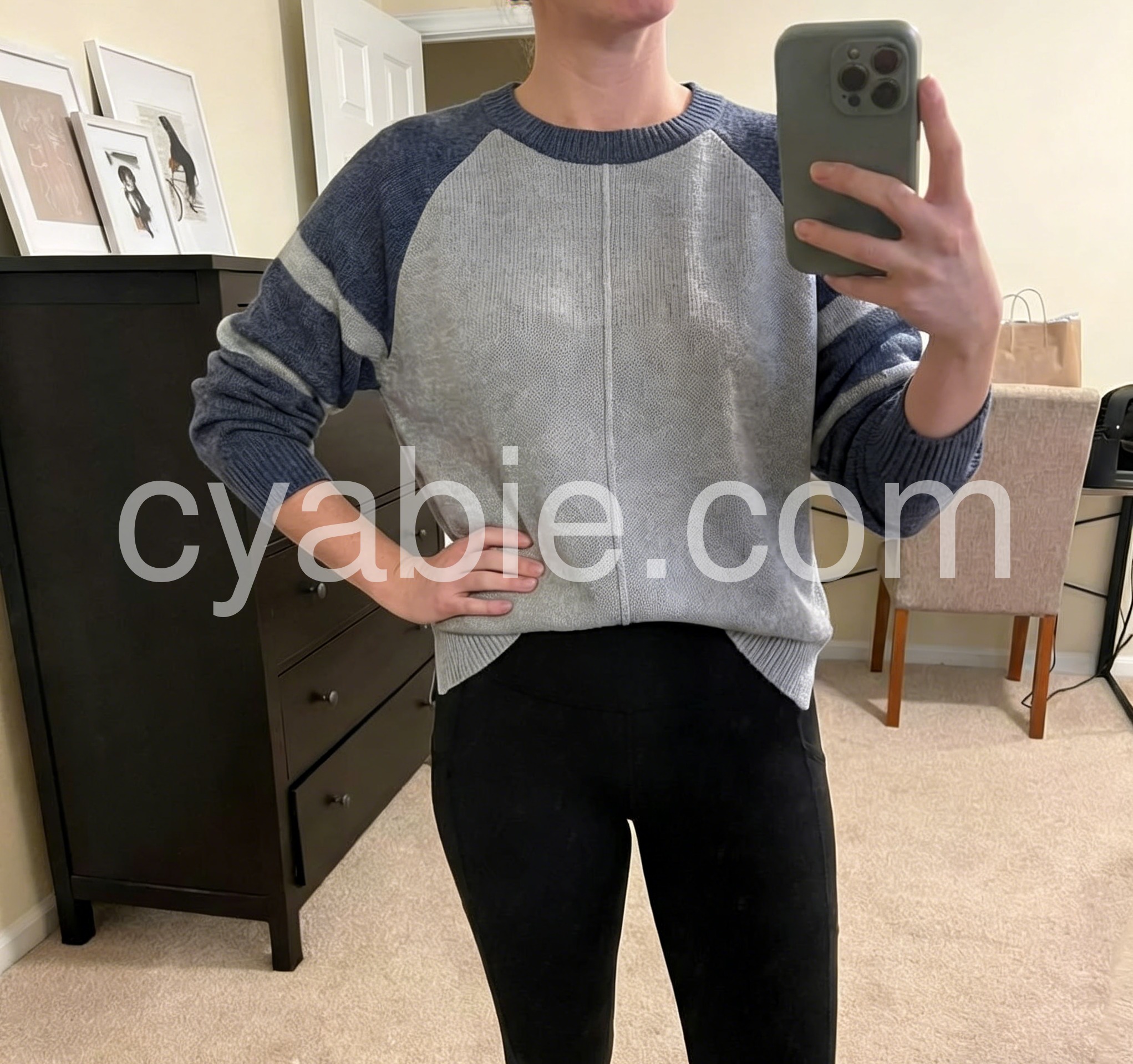 Yes!It runs true to the garment size chart please choose your size based on your measurements.This expertly crafted sweater features a stylish color block print and a comfortable round neck. Its long sleeves provide warmth and versatility, making it a perfect addition to any wardrobe. Stay fashionable and cozy with this must-have piece.